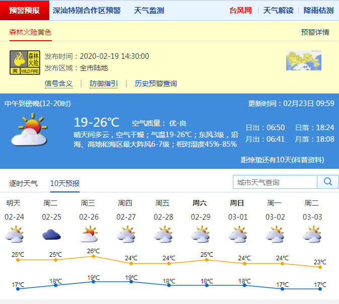 深圳今日最高溫26℃,森林火險(xiǎn)黃色預(yù)警持續(xù)生效中