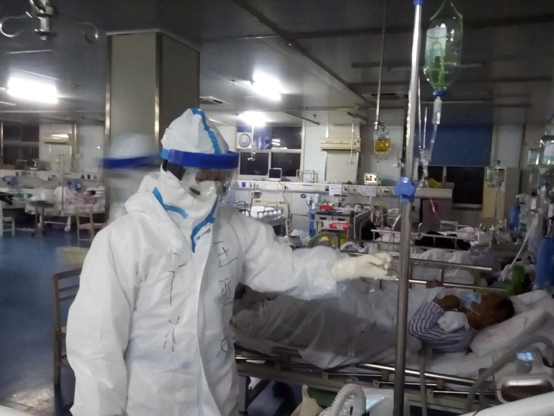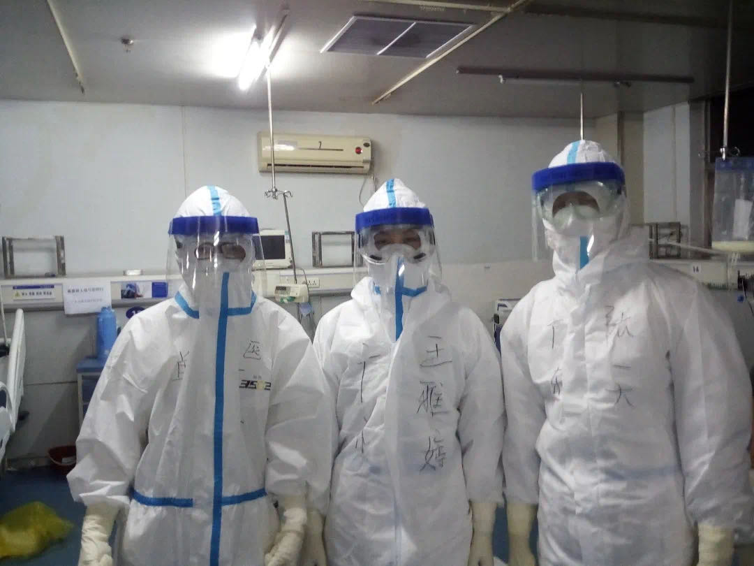 剛開(kāi)始,我小心地保持著與患者的距離,一個(gè)、兩個(gè)、三個(gè)……隨著接觸的患者增加,我慢慢也放松了,開(kāi)始進(jìn)入狀態(tài)。在病房?jī)?nèi),我詢問(wèn)病人情況,解釋病情,提醒住院醫(yī)師做好查房記錄,探討用藥情況,傳達(dá)鐘南山院士的最新診療方案、第六版治療指南……終于找到支援隊(duì)專家的感覺(jué)了。憋氣、悶熱,似乎都來(lái)不及體會(huì),突然后背一涼,怎么有水滴下來(lái)了?難道是防護(hù)衣破了?心頭一緊,再仔細(xì)感覺(jué),原來(lái)是汗水在里面流淌,虛驚一場(chǎng)。