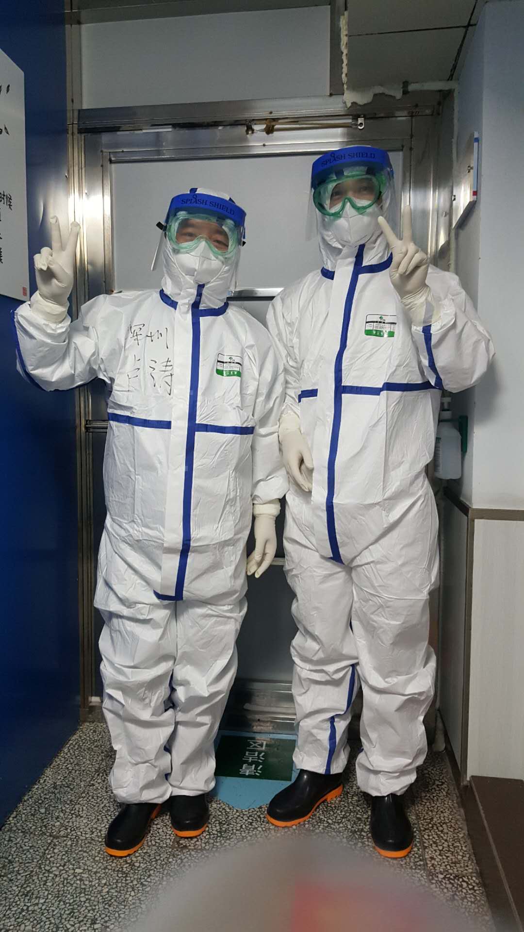 三病區(qū)上下兩層樓,38個(gè)病人,我全部過(guò)了一遍,任務(wù)圓滿完成。但最危險(xiǎn)的事情來(lái)了:出病房脫隔離衣。這個(gè)環(huán)節(jié)是沒(méi)人幫忙的,全靠自己。我跟著指示一步一步做,小心翼翼地避免碰到被污染的防護(hù)裝備。隔離衣還是有點(diǎn)小,幾經(jīng)掙扎,終于脫下。小心小心再小心,還是沒(méi)站穩(wěn),腳點(diǎn)了一下地板,馬上把襪子脫下扔掉,再用酒精噴灑腳部。安全第一,這時(shí)候沒(méi)辦法心疼那雙新襪子。