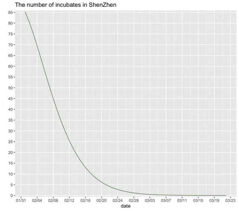 而通過模擬深圳新冠肺炎每日的潛伏者數量可以看出,2月份以來每日的潛伏者數量在持續(xù)下降,2月18日已降至個位數,到3月初時潛伏者將基本清零。說明在一系列的防控措施下將病毒傳染的途徑嚴格控制,很好地防止了病毒的擴散。