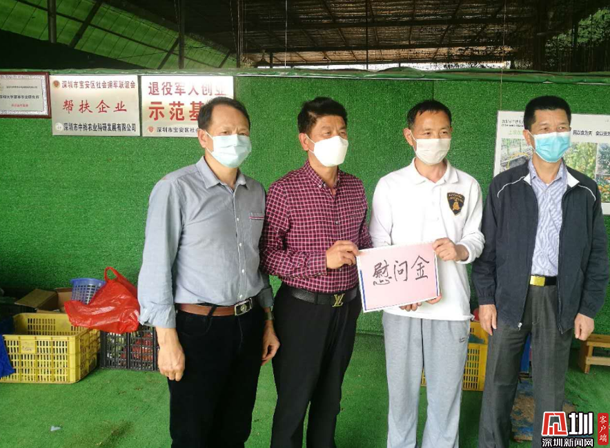 2月22日下午,寶安區(qū)退役軍人事務局局長劉偉、 寶安 區(qū)社會擁軍聯誼會會長李新華, 以及匯駿豐資產管理有限公司黨支部代表等人 , 專門驅車前往深圳市中樺農業(yè)科研發(fā)展有限公司位于寶安區(qū)燕羅街道的蔬菜基地,慰問該公司員工并送上慰問金。