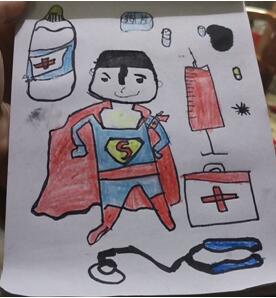 見(jiàn)圳客戶端·深圳新聞網(wǎng)訊(記者 曹文麗 通訊員 王霏 楊睿)有這么一幅畫(huà),中間畫(huà)著一位“小超人”,“小超人”周圍畫(huà)著聽(tīng)診器、注射器等醫(yī)療器械,充滿童趣,在抗疫期間,這幅畫(huà)也給人們正能量。而這幅畫(huà)的作者,是一個(gè)6歲的孩童。他畫(huà)完后認(rèn)真地說(shuō):“這個(gè)病毒太壞了,我長(zhǎng)大后要當(dāng)醫(yī)生,當(dāng)超人,要用聽(tīng)診器、注射器,把這些病毒全殺死!”稚嫩的聲音里充滿了對(duì)醫(yī)生這個(gè)職業(yè)的向往,因?yàn)樗δ咳靖改腹ぷ鲿r(shí)的忘我,因?yàn)樗母改甘且粚?duì)戰(zhàn)斗在抗疫一線的醫(yī)務(wù)工作者。