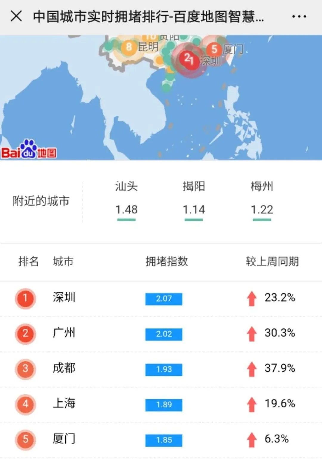 3月2日晚上,深圳擁堵指數(shù)居全國榜首