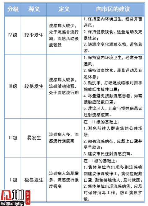 根據(jù)深圳市疾控中心發(fā)布的流感指數(shù)應(yīng)對指引,市民應(yīng)保持室內(nèi)環(huán)境衛(wèi)生,經(jīng)常開窗通風(fēng);保持健康飲食、適量運動及充足休息;勤洗手,打噴嚏或咳嗽時用手帕或紙巾掩住口鼻;盡量避免接觸流感患者,如需接觸應(yīng)配戴口罩;建議老人、兒童與慢性病患者注射流感疫苗。