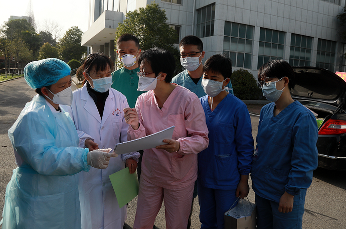 盡管隔離區(qū)里都是已經(jīng)符合出院條件的治愈病人,但要進(jìn)去,還是要跟進(jìn)入病區(qū)一樣穿戴全套防護(hù)裝備。在深圳醫(yī)療隊(duì)隊(duì)員的協(xié)助下,記者按要求穿上防護(hù)服、戴上護(hù)目鏡和兩層醫(yī)用橡膠手套,把自己從頭到腳包了個(gè)嚴(yán)嚴(yán)實(shí)實(shí),然后拿起專用的工作手機(jī),開始了到湖北以后防護(hù)等級(jí)最高的一次采訪。