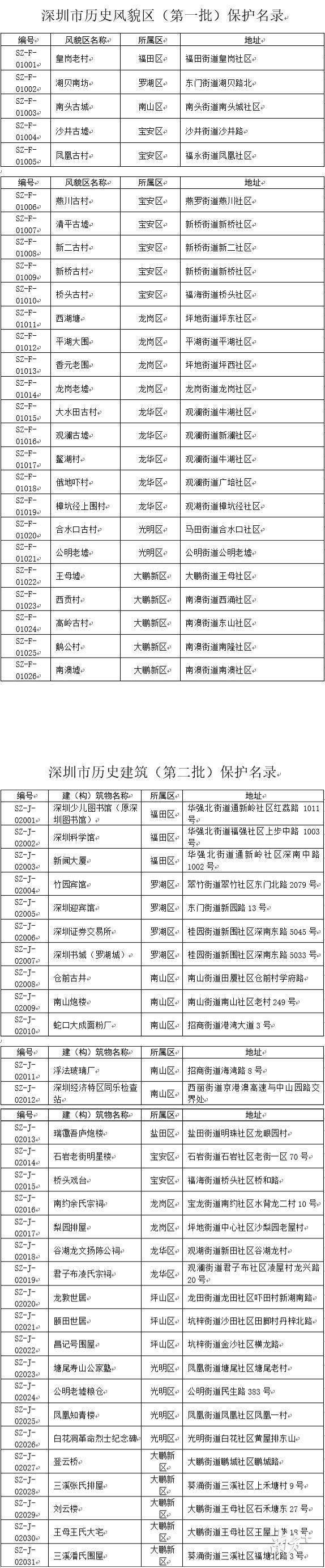 第一批深圳市歷史風貌區(qū)中,寶安區(qū)7個,龍華區(qū)5個,大鵬新區(qū)5個,龍崗區(qū)有4個,光明區(qū)2個,福田、羅湖、南山和各有1個。