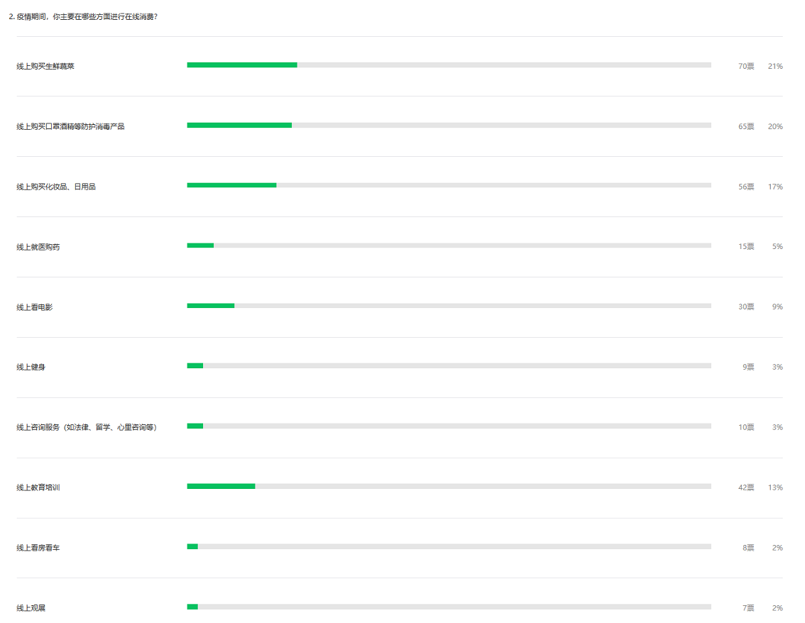疫情在無(wú)意中改變了市民的原有生活習(xí)慣,超八成深圳人表示疫情期間主要以“在線消費(fèi)”為主,而生鮮蔬菜、口罩酒精、化妝日用品、教育培訓(xùn)、看電影成為疫情期間深圳人“在線消費(fèi)”的五大主要領(lǐng)域。