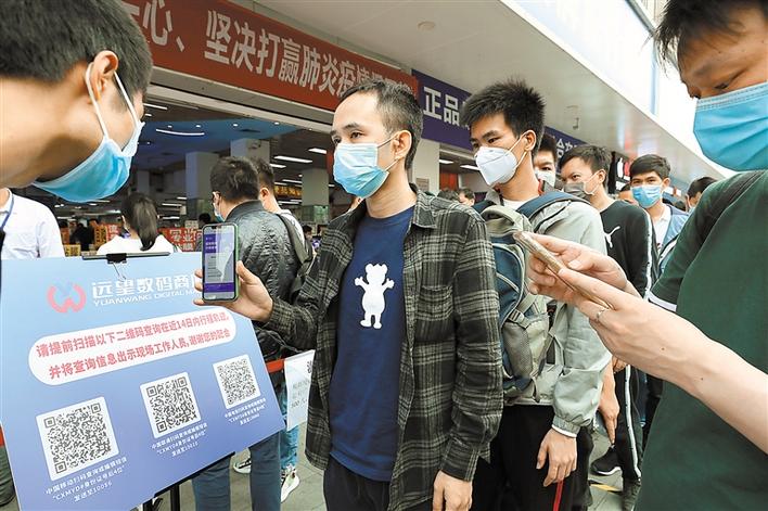 為方便市場(chǎng)了解人員去向,華強(qiáng)北街道指導(dǎo)市場(chǎng)管理方利用運(yùn)營(yíng)商推送服務(wù),引導(dǎo)商戶(hù)通過(guò)掃描相應(yīng)的運(yùn)營(yíng)商二維碼,獲取人員過(guò)去14天去向,做到入場(chǎng)人員信息“一掃清”。根據(jù)有關(guān)通知,商戶(hù)準(zhǔn)備好自己的健康檔案、i深圳、“一掃清”等信息,經(jīng)現(xiàn)場(chǎng)測(cè)溫正常,若是從外地返深人員,按要求進(jìn)行居家隔離后,才能順利取得市場(chǎng)商戶(hù)通行證。通行證需要配合身份證使用,確保一人一證。另外,華強(qiáng)北街道還通過(guò)升級(jí)通風(fēng)系統(tǒng)等方式加大了室內(nèi)空氣流動(dòng)量。(深圳商報(bào)記者 余海波 攝影報(bào)道)