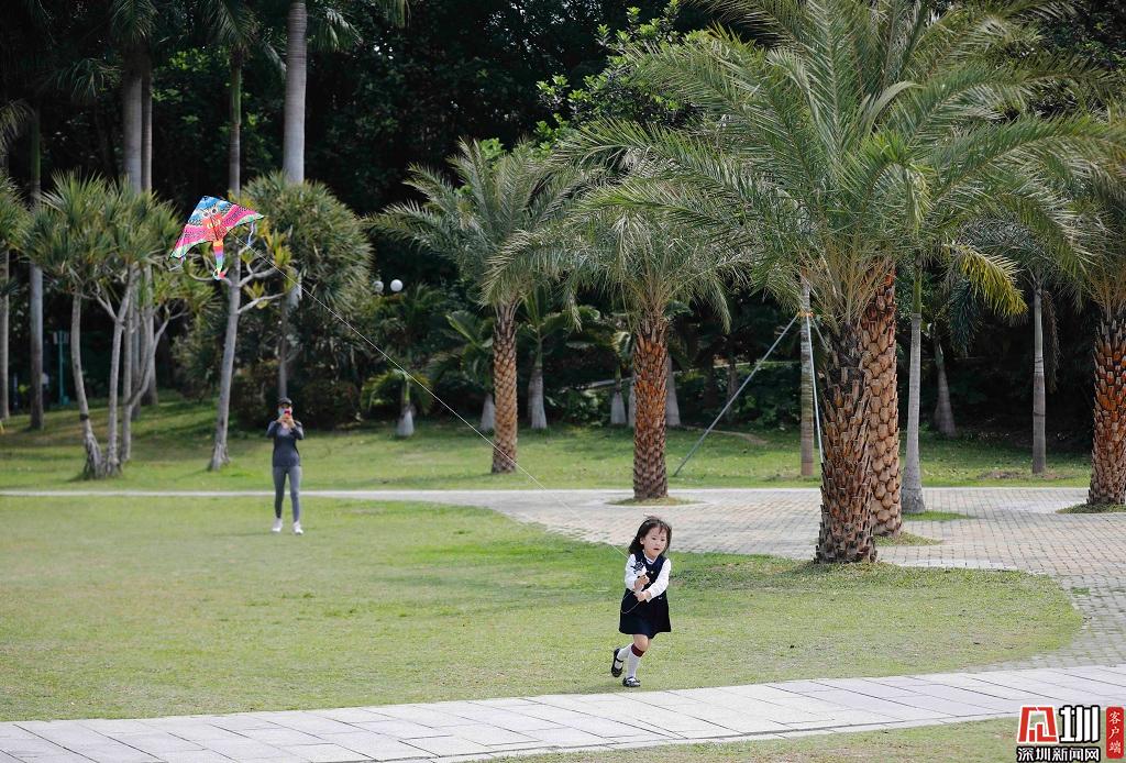 蓮花山公園內(nèi),一名小女孩正在放風(fēng)箏。
