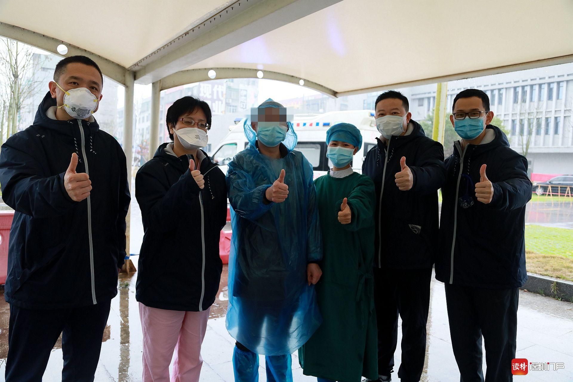 3月8日,監(jiān)利縣首例新冠肺炎重癥患者張建(化名,中)治愈出院后與深圳醫(yī)療隊醫(yī)護人員合影留念。
