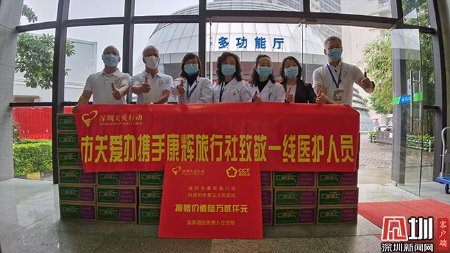為表達(dá)對(duì)醫(yī)護(hù)人員的感謝,深圳市康輝旅行社捐贈(zèng)價(jià)值6.2萬(wàn)元的廣東省內(nèi)溫泉酒店免費(fèi)入住券40張。每張入住券可在廣東省內(nèi)指定酒店入住雙床房或大床房。“疫情期間,我們康輝人一直都在為抗擊疫情獻(xiàn)綿薄之力?!鄙钲谑锌递x旅行社有限公司董事總經(jīng)理滿炎權(quán)告訴記者,在疫情前期,全國(guó)各地醫(yī)用物資告急。各地康輝分公司迅速自我組織、自籌資金,聯(lián)系在國(guó)外的康輝旅行社的領(lǐng)隊(duì)及導(dǎo)游購(gòu)買大量醫(yī)療物資回國(guó)?!艾F(xiàn)在國(guó)內(nèi)醫(yī)療物資暫時(shí)不缺了,我們深圳康輝送給三院的醫(yī)護(hù)人員溫泉酒店入住券,希望他們?cè)谝咔榻Y(jié)束后,能好好休息?!?/p>