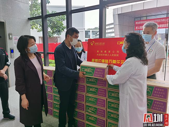 為了向這些最美的逆行者致敬,市關(guān)愛辦攜手愛心企業(yè)青海藏蜜公司與深圳市康輝旅行社,看望慰問(wèn)一線的醫(yī)務(wù)工作人員。青海藏蜜公司向一線醫(yī)護(hù)人員捐贈(zèng)1500盒青藏高原野花蜜,總價(jià)值6.3萬(wàn)元。深圳藏蜜營(yíng)銷管理有限公司總經(jīng)理王大鳴動(dòng)情地說(shuō),抗擊疫情是一場(chǎng)沒(méi)有硝煙的戰(zhàn)役,牽系著所有人的心,因?yàn)獒t(yī)護(hù)人員的日夜守護(hù)與付出,大家才能安心復(fù)工,照常生活。希望醫(yī)護(hù)人員能在勞累之余,泡上一杯蜂蜜水,增強(qiáng)抵抗力,緩解心里壓力,更好地續(xù)航戰(zhàn)斗。