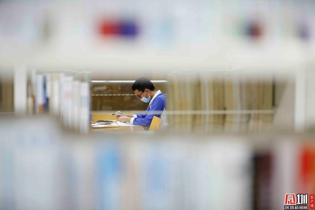 深圳圖書館中,一位讀者正在學(xué)習(xí)。
