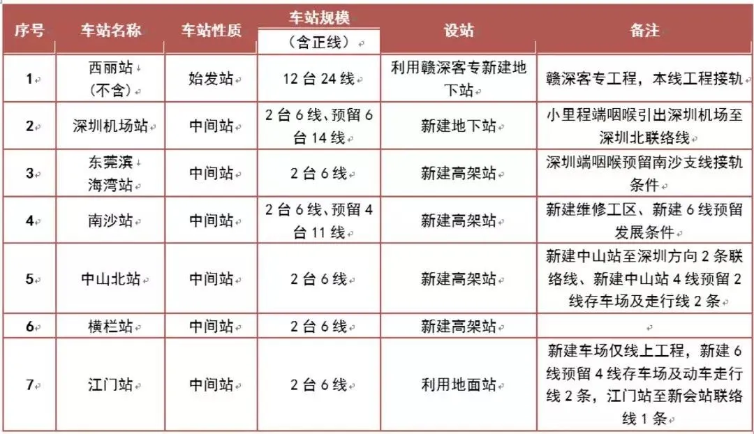 西麗至南沙段200km全線設(shè)西麗、深圳機(jī)場(chǎng)、東莞濱海灣、南沙、中山北、橫欄、江門等7座車站。