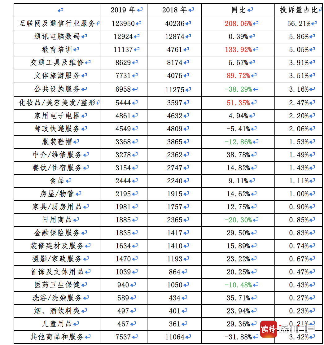 2019年消費(fèi)投訴同比增長(zhǎng)69.77%
