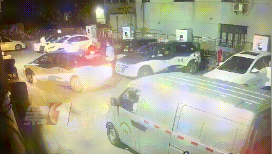 監(jiān)控畫面顯示,25日晚上23點(diǎn)左右,一輛出租車和一輛面包車先后到達(dá)龍崗大道木棉灣路段的一個充電站。出租車司機(jī)先找到了一個位置,準(zhǔn)備倒入充電時,后面的面包車突然往前開,兩名司機(jī)因為停車位的問題發(fā)生爭執(zhí)。隨后,出租車司機(jī)下車?yán)碚?,動手推搡了面包車司機(jī)一下。
