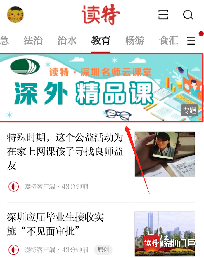 打開讀特客戶端,點(diǎn)擊“教育”頻道