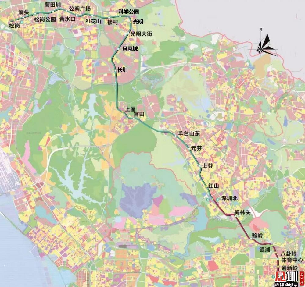 地鐵6號線線路起于松崗站,途經(jīng)寶安區(qū)、光明區(qū)、龍華區(qū)、福田區(qū)、羅湖區(qū),止于科學館站,大致呈“7形”走向,6號線一二期總長49.396公里,共設27座車站,全程用時66分鐘。線路建成后,將帶動光明區(qū)和龍華區(qū)發(fā)展、促進城市空間結(jié)構(gòu)完善,進一步加強與東莞、香港城市軌道交通之間的溝通聯(lián)系,同時有效緩解深圳北站換乘壓力,加速特區(qū)經(jīng)濟一體化進程。