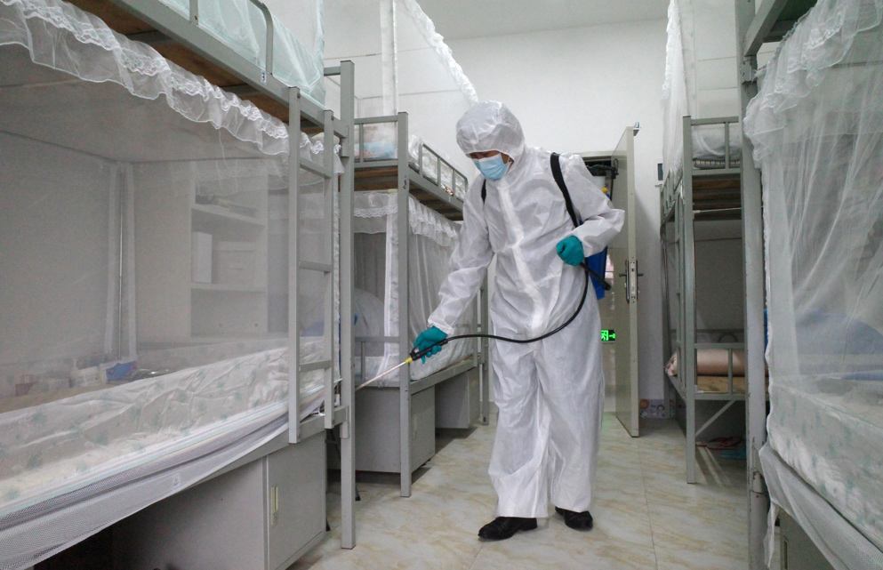與此同時,為保障住宿生安全,翠園中學(xué)已對所有辦公室、教室和學(xué)生寢室、電梯進行了全方位消殺,并在校園安裝150多個水龍頭,配備洗手液。在每棟樓設(shè)置了消毒卡片,每層樓增設(shè)口罩回收箱,每間教室安裝紫外線燈,每天定時進行消殺工作。此外,學(xué)校還在每間寢室洗手間都配備了洗手液,張貼了“七步洗手法”標(biāo)識。食堂間隔1米擺放單人單座,并在地面貼上“排隊取餐、間隔1米”的腳印貼紙,取餐處貼有“請自覺保持距離”“請勿面對面就餐”等標(biāo)識。
