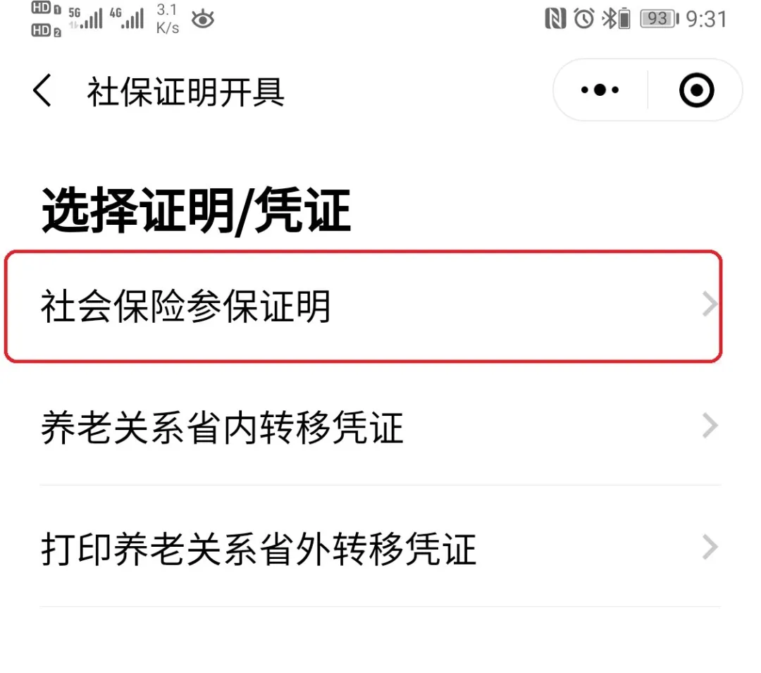 4、選擇“社會(huì)保險(xiǎn)參保證明”。