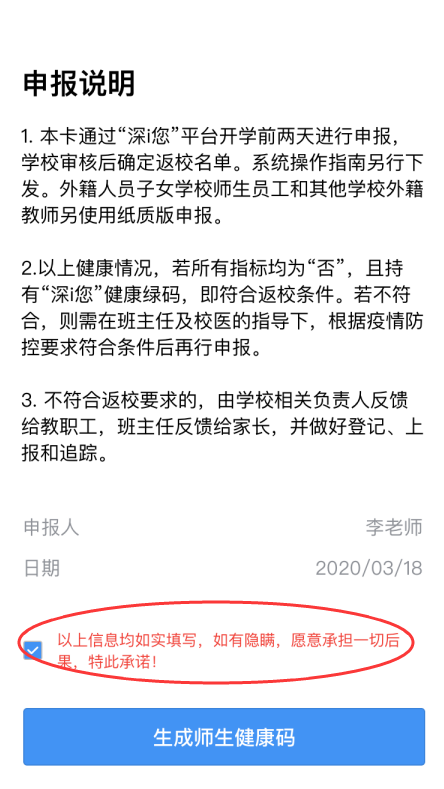 見(jiàn)圳客戶端·深圳新聞網(wǎng)2020年5月2日訊 深圳初三高三的學(xué)長(zhǎng)學(xué)姐們已經(jīng)返校了,非畢業(yè)班的學(xué)弟學(xué)妹們接下來(lái)也將陸續(xù)返校。據(jù)深圳市教育局消息,5月2日(今天)開(kāi)始,師生要在“深i您-自主申報(bào)”平臺(tái)的開(kāi)學(xué)專區(qū)進(jìn)行健康信息申報(bào),符合條件的才可以返校。