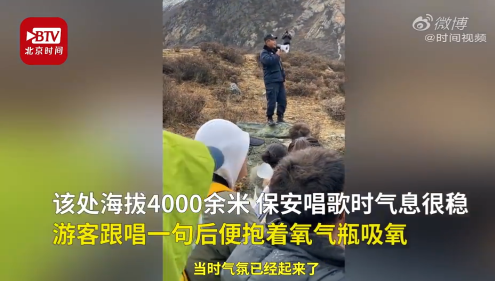 有的游客忍不住跟唱后又馬上埋頭吸氧