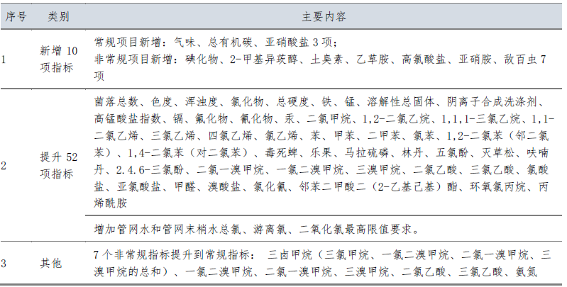 深圳市《生活飲用水水質(zhì)標(biāo)準(zhǔn)》與國家現(xiàn)行標(biāo)準(zhǔn)相比,增加了10項指標(biāo),提升了52項指標(biāo)(含消毒劑);附錄由原來的28項增加到45項;考核方法上提升了出廠水和管網(wǎng)水合格率要求,增加了嗅味物質(zhì)和消毒副產(chǎn)物的檢測,重點關(guān)注龍頭水水質(zhì)。