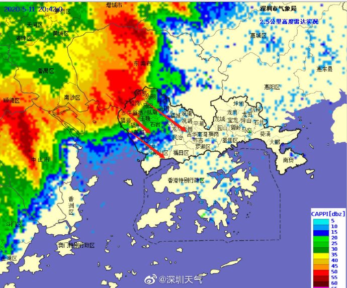 21時(shí)49分:目前強(qiáng)雷雨云團(tuán)已給寶安、光明、龍華、南山、福田等區(qū)域帶來(lái)強(qiáng)雷雨和大風(fēng),預(yù)計(jì)即將影響羅湖、鹽田、龍崗、坪山和大鵬,將帶來(lái)小時(shí)雨量30毫米左右的降雨以及8-9級(jí)的短時(shí)大風(fēng),請(qǐng)注意防御。