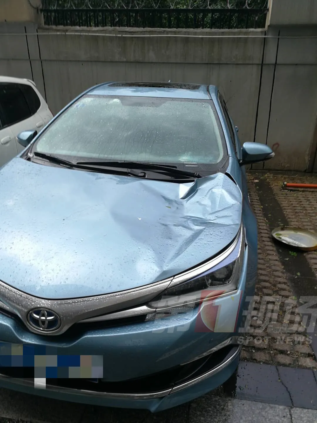 其中,龍華民治春華四季園42棟高層的儲(chǔ)水箱,砸到了樓下藍(lán)色轎車,造成車輛發(fā)動(dòng)機(jī)蓋一處凹陷,多處刮痕。