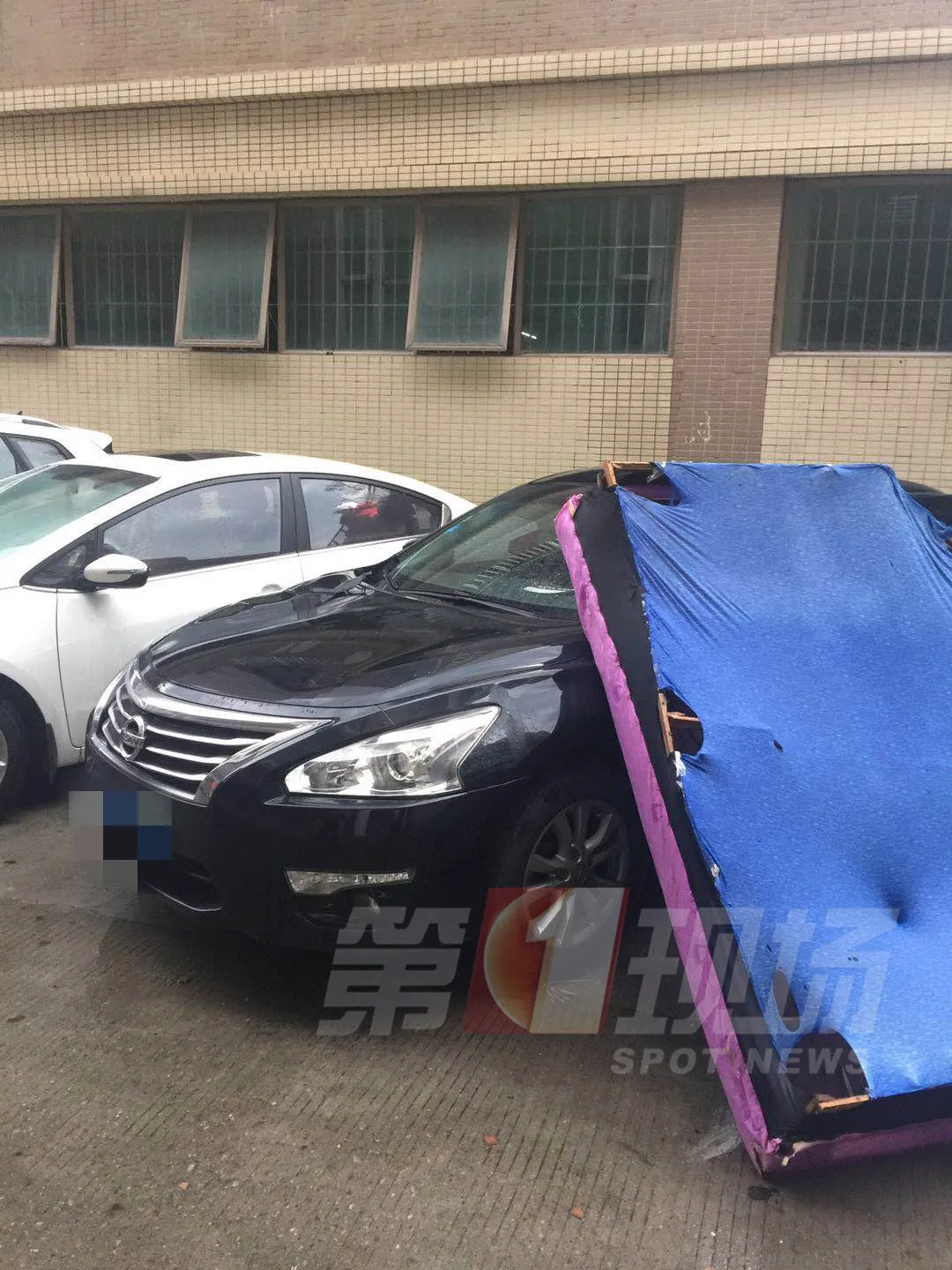 床墊從天而降車前引擎蓋被砸