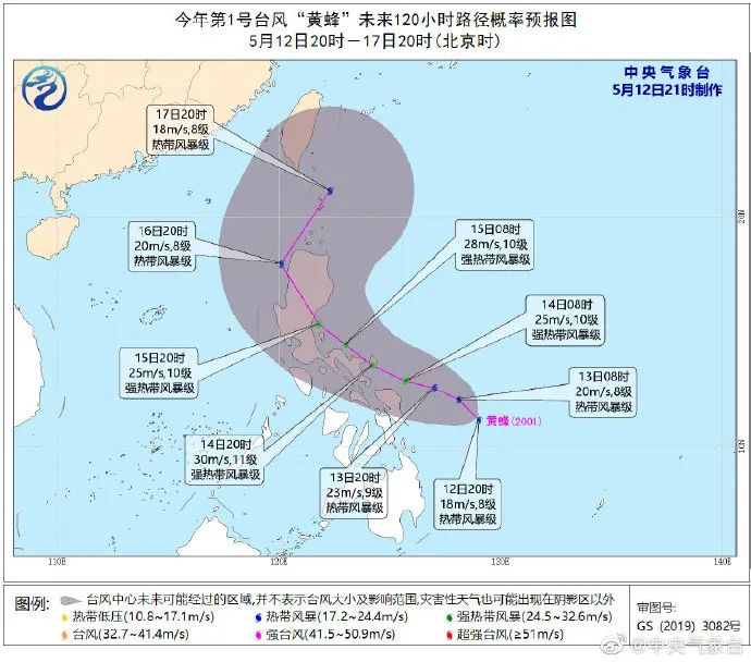 今年第1號(hào)臺(tái)風(fēng)“黃蜂”(熱帶風(fēng)暴級(jí))