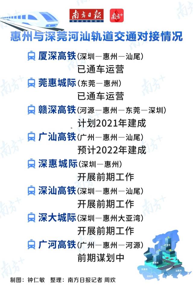 值得一提的是,待廣汕高鐵2022年建成后,從惠州到廣州、汕尾也只要半小時(shí)。贛深高鐵和廣汕高鐵還將在惠州實(shí)現(xiàn)轉(zhuǎn)換銜接。加上正在開(kāi)展前期工作的深惠城際、深汕高鐵、深大城際等,軌道上深圳都市圈將初步成形。而惠州也將成為大灣區(qū)連接粵東、粵北以及閩贛地區(qū)的樞紐門(mén)戶(hù)。
