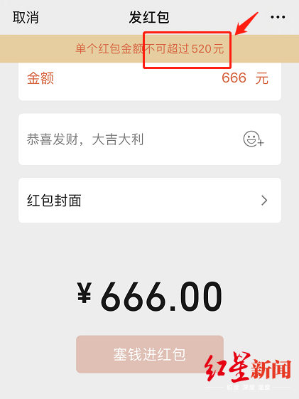 見圳客戶端·深圳新聞網(wǎng)2020年5月20日訊 今天是5月20日,“520”諧音“我愛你”,被網(wǎng)友們賦予了“節(jié)日”屬性。騰訊微信團隊宣布,5月20日00:00-23:59,微信普通紅包的單個金額上限由200元上調(diào)到520元。此前微信普通紅包單個限額200元,如果需要發(fā)送超過200元的紅包給好友,則需要分次發(fā)送。