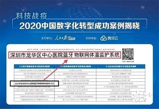 日前,《人民日報》公布“科技戰(zhàn)疫——2020中國數(shù)字化轉型成功案例”,龍華區(qū)中心醫(yī)院的藍牙物聯(lián)網體溫監(jiān)護系統(tǒng)入榜,躋身于醫(yī)療健康類數(shù)字化轉型成功案例。