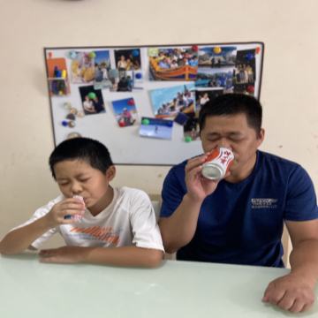 ▲酸甜的益力多,是我的最愛,而爽口的健力寶,是爸爸童年時的最愛。我想試試爸爸的健力寶,感受爸爸自由自在的童年:阡陌交通,雞犬相聞,在田間放牛,快樂地奔跑,再喝上爽口的健力寶,那感覺一定倍爽!