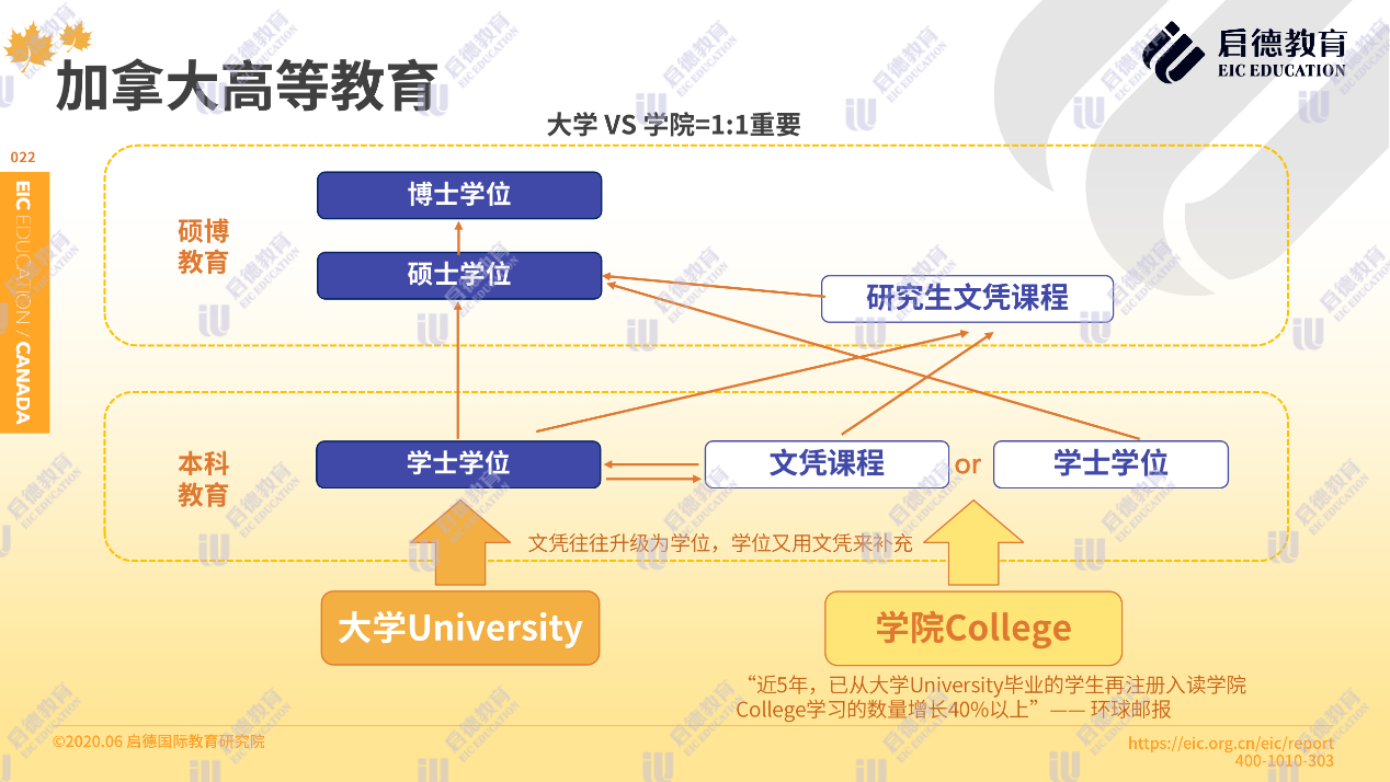 學(xué)院( Colleges )、專業(yè)學(xué)院( Institutes )、理工學(xué)院( Polytechnics )、普通職業(yè)教育學(xué)院( CEGEPs,魁北克省獨(dú)有)是加拿大的公立高等教育機(jī)構(gòu),主要向以就業(yè)為目的的學(xué)生提供職業(yè)技能導(dǎo)向型課程。加拿大學(xué)院可提供本科學(xué)士學(xué)位、證書課程、研究生文憑課程、與大學(xué)合作的聯(lián)合學(xué)士學(xué)位等。據(jù)2018年加拿大最具影響力媒體《環(huán)球郵報(bào)》( The Globe and Mail )數(shù)據(jù)統(tǒng)計(jì),近5年內(nèi),擁有大學(xué)畢業(yè)以上學(xué)歷者申請(qǐng)加拿大公立學(xué)院的數(shù)量增長(zhǎng)40%以上。