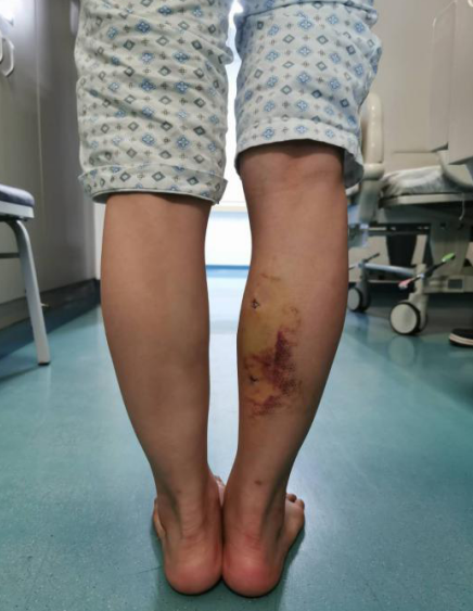 術(shù)后,楊柳(化名)的雙側(cè)小腿恢復(fù)等長(zhǎng),她的右腳腳跟終于可以著地站立。