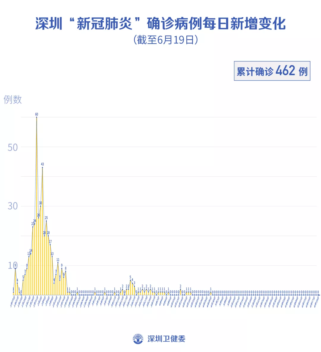 截至6月19日24時,深圳累計報告新冠肺炎病例462例。