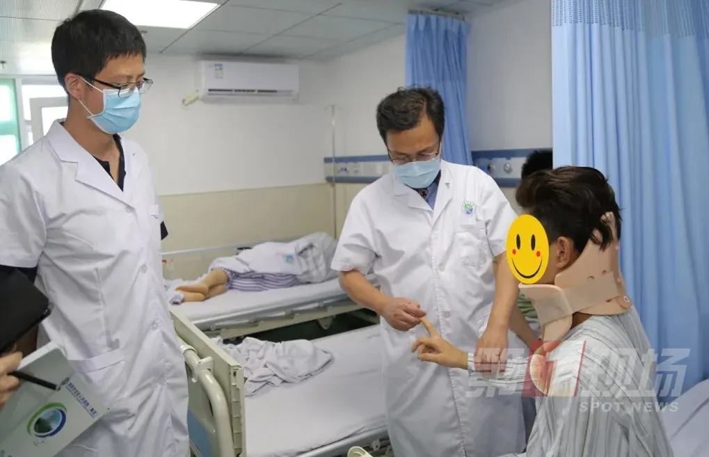 小威(化名):我當(dāng)時(shí)在玩手機(jī),感覺脖子酸痛酸痛的,脖子后面突然刺痛了一下,我以為是抽筋。我以為睡醒就好,后來脖子越來越痛,身體完全動(dòng)不了。