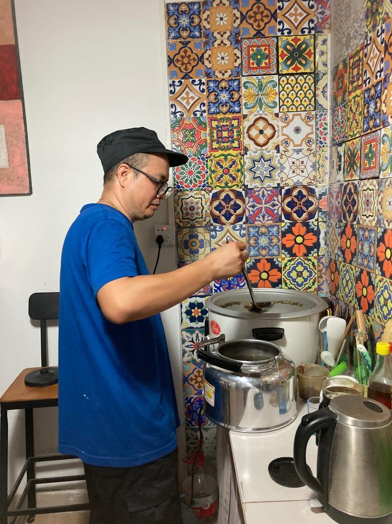 小林哥今年43歲,是上圍藝術(shù)村的原住居民,往年夏天他都會(huì)煲一些涼茶給家人及周圍的朋友們喝。新冠肺炎疫情期間,小林哥一直堅(jiān)守一線,這樣的抗疫經(jīng)歷讓他深感戶外一線人員的辛苦。