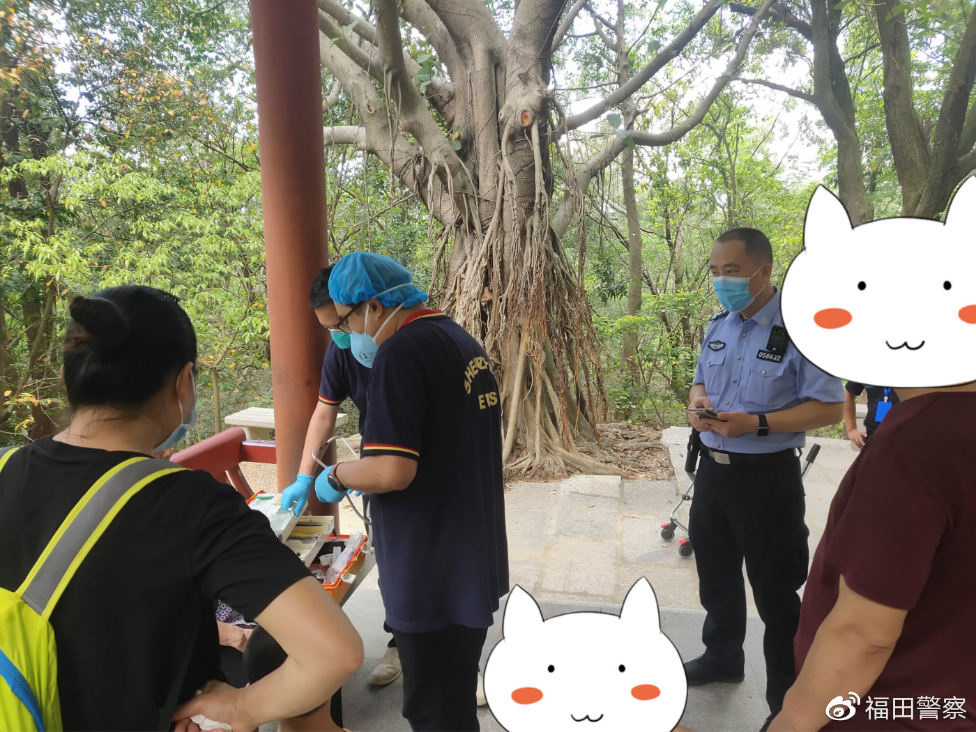 13時許,接派出所前臺指令,報稱一老人身體不適請求幫助后,民警立即趕到現場,協助120醫(yī)務人員進行檢查。檢查完畢后,民警為老人遞上一杯水,并在確認老人身體無礙后,將其護送下山。