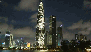 平安國際金融中心、京基100大廈、深圳漢國城市商業(yè)中心、深圳灣1號(hào)、中國華潤大廈五座城市地標(biāo)的外立面上,同時(shí)亮起了絢麗的燈光。