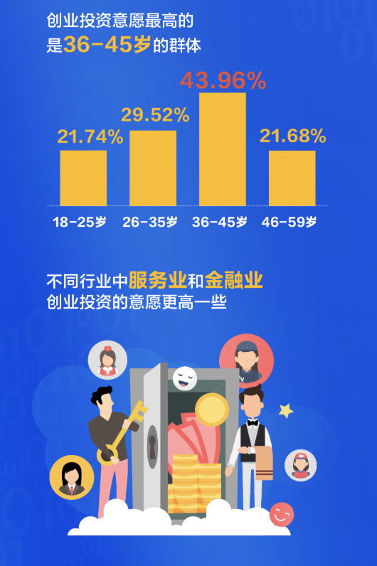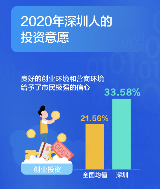 有了錢,深圳人會投資什么?大調(diào)查發(fā)現(xiàn),深圳人在創(chuàng)業(yè)投資的選擇占比高達(dá)33.58%,比全國平均水平要高出12個(gè)百分點(diǎn),良好的創(chuàng)業(yè)環(huán)境和營商環(huán)境給予了市民極強(qiáng)的信心。從不同年齡段來看,創(chuàng)業(yè)投資意愿最高的是36-45歲的群體,不同行業(yè)中,服務(wù)業(yè)和金融業(yè)創(chuàng)業(yè)投資的意愿更高一些。