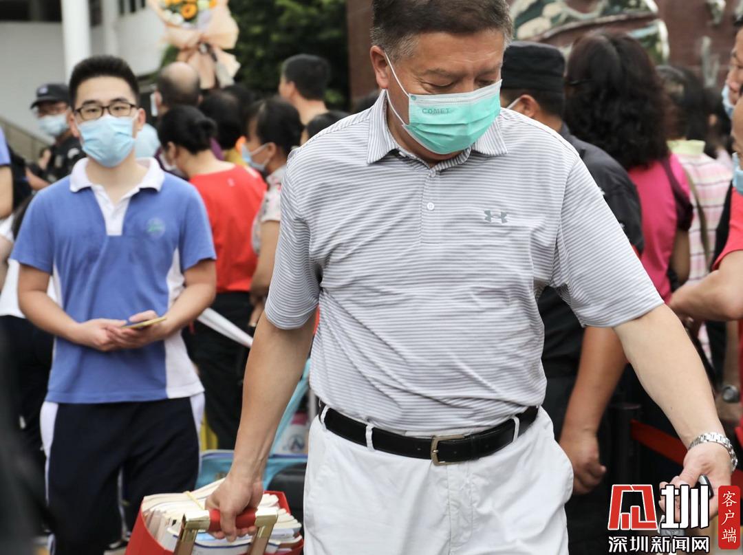 深圳高級(jí)中學(xué)考點(diǎn)外家長(zhǎng)看見(jiàn)孩子笑臉相迎。