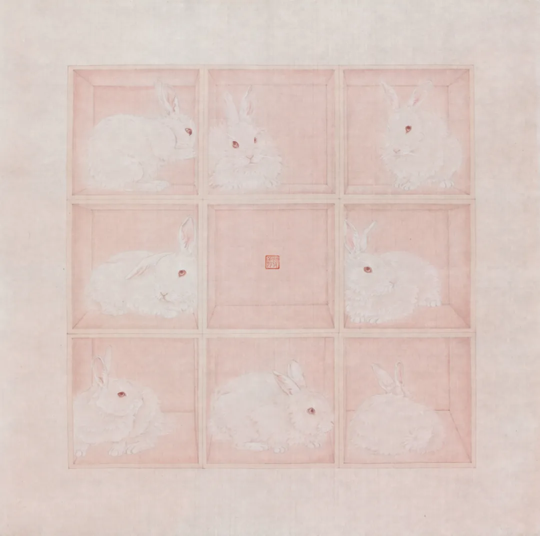 賀翔《rabbit系列 no.1》,絹本設色,40×30cm,2018年