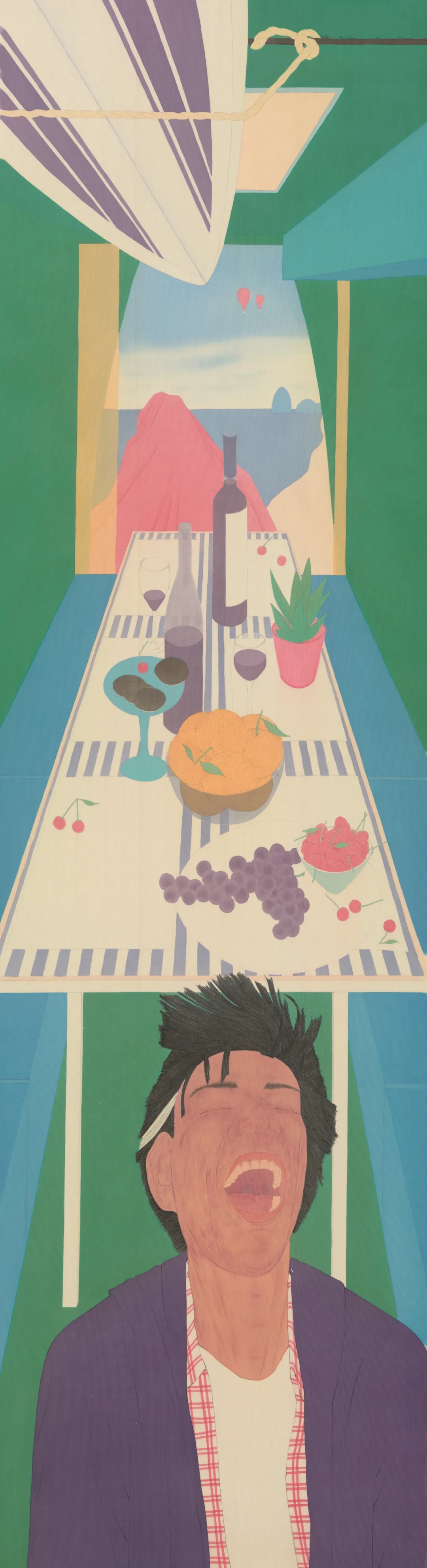 苗瀚文《浮夸背后系列-24》,紙本設色,54×112cm,2017-2019年