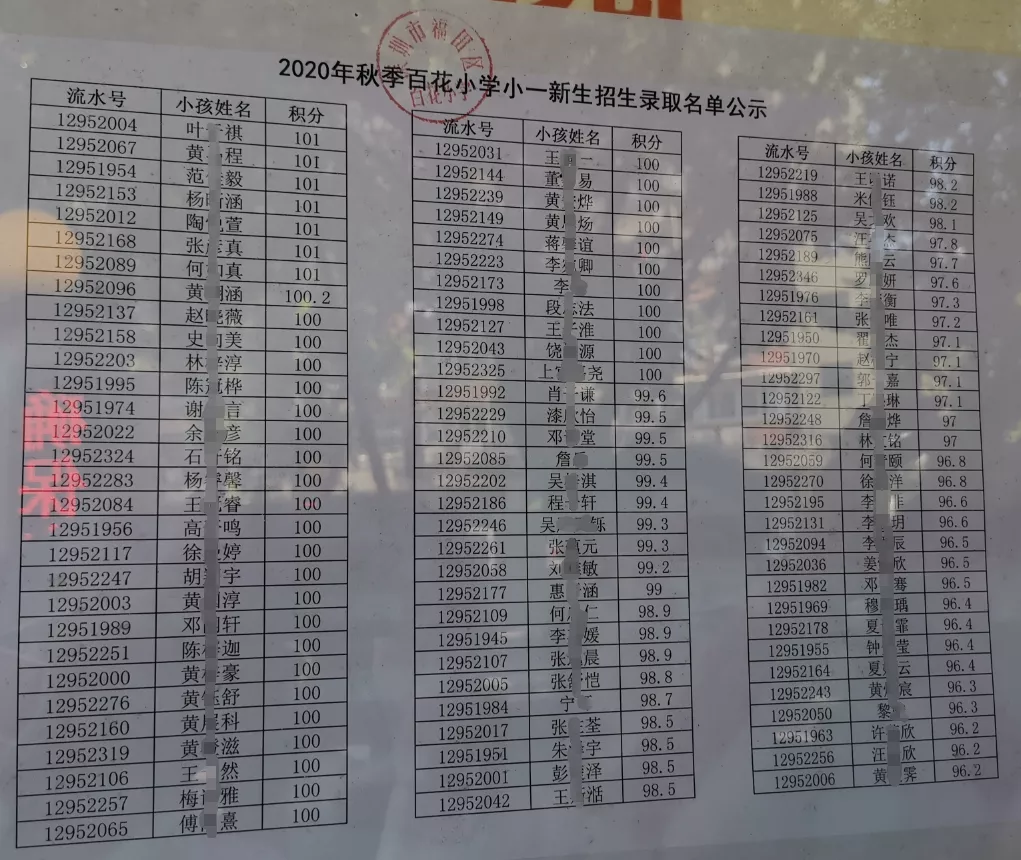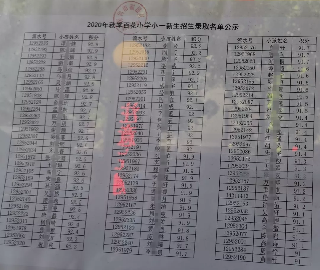 2020年福田區(qū)公辦小一新生錄取名單來了,部分學(xué)校最低錄取積分曝光