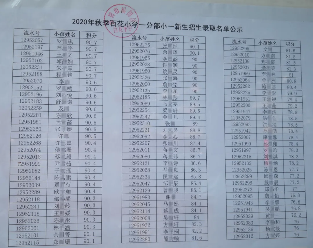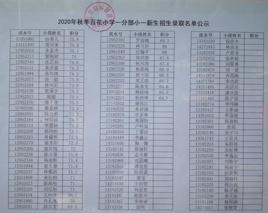 2020年福田區(qū)公辦小一新生錄取名單來了,部分學(xué)校最低錄取積分曝光