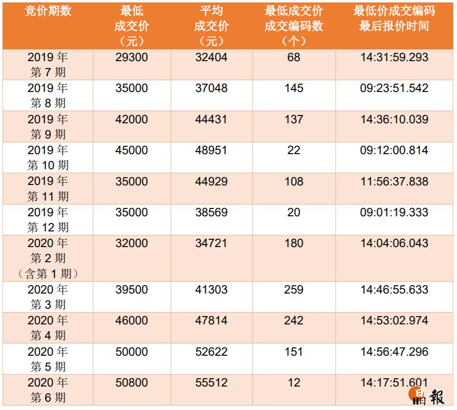 7月15日,2020年第7期普通小汽車增量指標(biāo)競價公告發(fā)布,本期普通小汽車增量指標(biāo)共3346個,其中個人指標(biāo)2945個。競價時間定為7月27日9:00至15:00,連續(xù)進行6個小時,單位和個人在同一時間分別對相應(yīng)增量指標(biāo)進行競價。此前,第5期、第6期個人最低成交價均破5萬,創(chuàng)近一年新高。