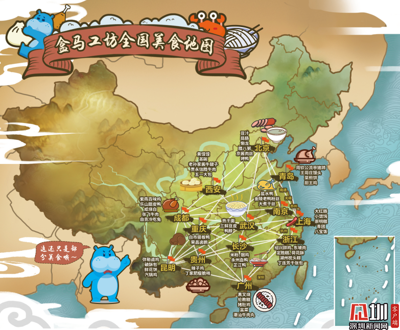 目前,盒馬工坊已覆蓋全國23個(gè)城市,不僅在每個(gè)城市做到因地制宜、本地本味,還把很多地方美食帶到了各地,形成了一張流動的全國美食版圖。